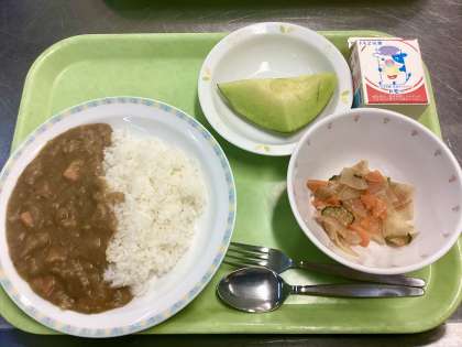 今年のメロンは、残念ながら9月になると甘味を失ってしまったようです。1学期のように甘くてジューシーとはいきいませんが、ビタミン・ミネラル・水分補給と最後に口の中をスッキリさせるためにもどうぞ!調理員さんが綺麗な形に切ってくれましたよ!
