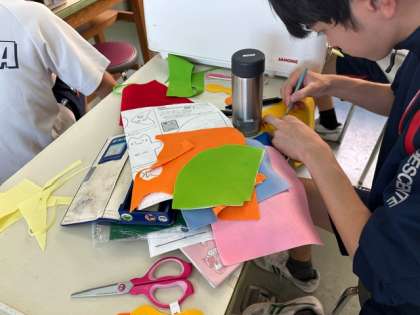 3年生の家庭科は、フェルトを使った幼児のおもちゃの制作をしています。構想がまとまって制作に入り出している生徒もいます。