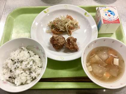 ・わかめご飯 ・とり肉のから揚げ