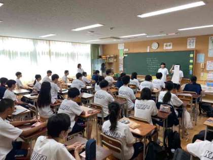 明日の生徒会役員選挙に向けて、最後の選挙活動が行われてます。演説者も聞く生徒も、みんな真剣です。
