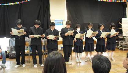 卒業生、在校生、保護者の皆さん、先生方が参加して、この日のために準備した出し 物を披露して、1・2年生から3年生への感謝を伝えました。