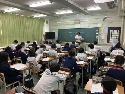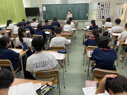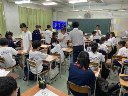 職場体験のしおりを綴じたり、説明を受けたりしているようです。
