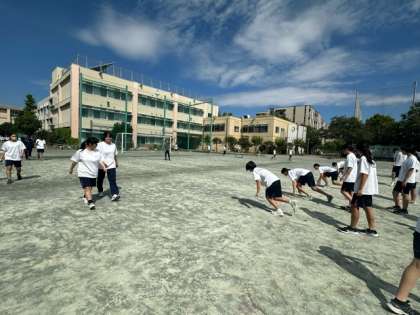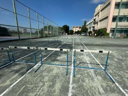 2年生の体育はクラスごとの授業です。1つのクラスはハードルの練習をしています。