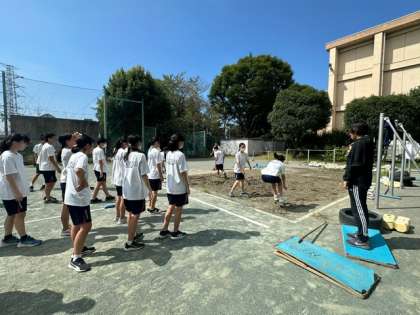 もう一つのクラスは走り幅跳びの練習をしています。