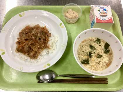 今日の卵スープは、にんにく・たけのこ・ねぎ・ごま油などの中華風の材料を使いつつ、コーンも入った「中華風コーンスープ」です!また、海藻の栄養もとれるように、わかめも入っています。仕上がりは今日もふわふわ卵!少しずつ丁寧に溶き卵を流し入れて、ベストな火加減に調整しながら混ぜるテクニックによってできます!こちらも美味しかったので、ぜひたくさん食べてください!