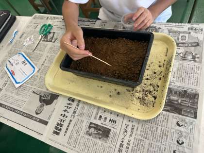 今日のI組には、喜多見北部会のお母様方がお手伝いに来てくださり、パンジーの種まきをしています。この活動は今年で6年目になります。