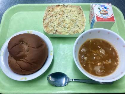 今日はみんな大好き!パンとグラタンとスープの組み合わせです!夏休みがあったので、このメニューを食べるのも何だか久しぶりですね。外食でも意外にない食べ合わせですし、家でも実施しづらいと思われるので、まさに給食ならではのメニューです!