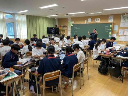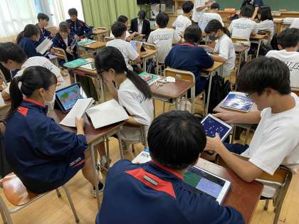 「英語で物語の要約をしよう」ということで、グループで分担を決めながら、発表の準備をしています。