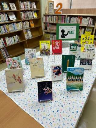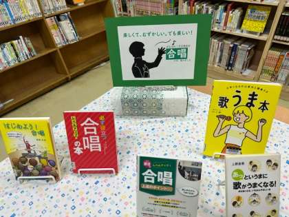 10月は学芸発表会の合唱コンクールにちなんで、合唱をテーマにした書籍を集めて、展示しています。借りることも出来ますので、どうぞご覧ください。