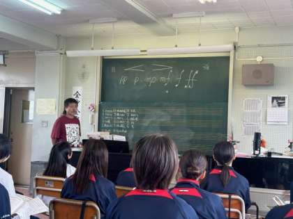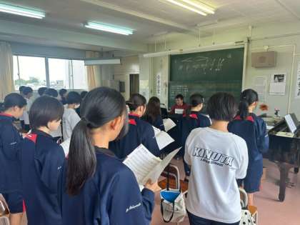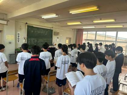 学芸発表会に向けて、学年合唱曲の「カリブ 夢の旅」を練習しています。楽譜を見ながら強弱のつけ方を学習していきます。