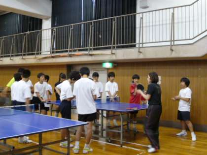 また、12日の練習はおとなの卓球選手が直接練習を見てくれました。Aチームはもとより1年生も卓球の基礎の打ち方を教えてもらいました。