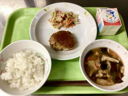 ハンバーグは、豆腐・ひき肉・レバーミンチ・ねぎ・人参・レンズ豆・干し椎茸・パン粉・卵・砂糖・醤油・酒を混ぜて生地を作っています。通常のハンバーグとは違う食材・調味料を使うことで、和風の風味と、給食ならではの栄養バランスを保つようにしています。肉だけで作るハンバーグのような「ガツンとした強いうま味」を、ひと口目で感じるといった仕上がりでは、確かにありません。しかし、食べていくうちに、だんだんと感じてくる素材のうま味とおろしソースによって、その美味しさに気づいてもらえるはずです!そして何よりも、先ほど書いたとおり、栄養満点です!