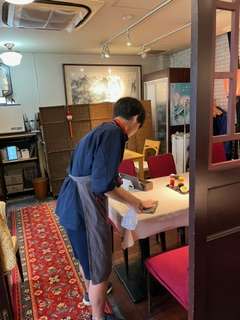 広味坊で片付けをしたりお客様にお料理を提供したりしていました。