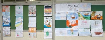 1年生の教室前の廊下に、学芸発表会合唱の学年合唱曲とクラス合唱曲のポスターを掲示しています。どうぞご覧ください。