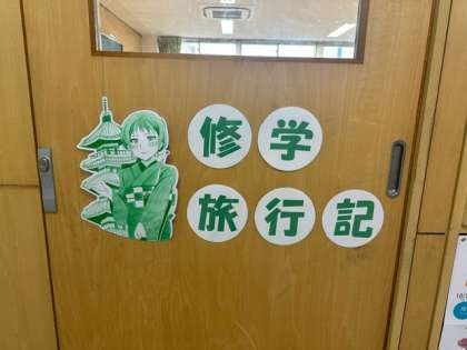 数学少人数教室では、3年生の修学旅行の事後学習記を展示しています。