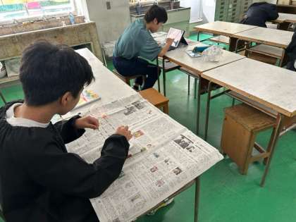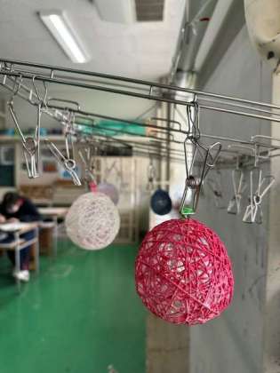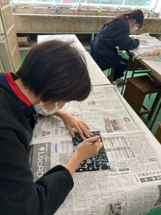 I組の美術では、風船にコットン糸を巻きつけて作るコットンボールとスクラッチ絵を制作しています。