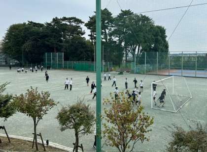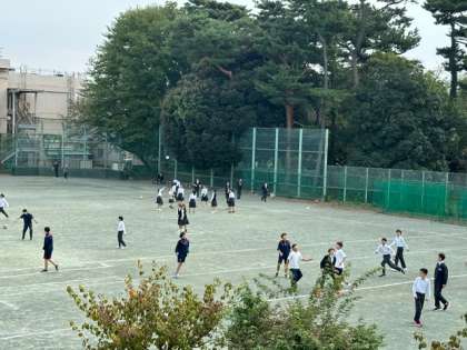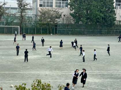 今日の昼休みは、校庭でボール遊びをする生徒がたくさんいます。