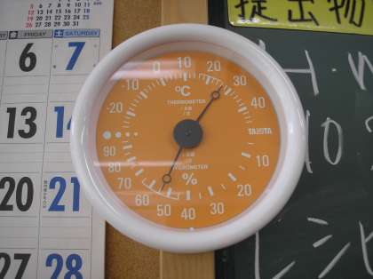 本校では、各クラスや教室に温度計を設置して、温度設定を確認しながら