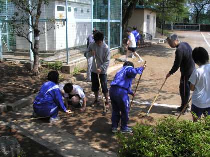 I組の生徒たちが、桜の木のまわりをきれいに掃除してくれました。