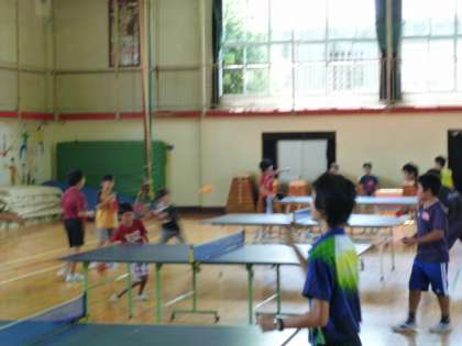 8月29日 1、2年生の新チームで山野小の「山のてっぺん教室」に行き、卓球教室のお手伝いをしてきました。小学生に、ラケットの持ち方や打ち方を教えました。卓球の楽しさを味わってくれると良いですね。