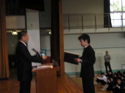 生徒の表彰は、将棋大会と卓球部。努力の成果が現れました。