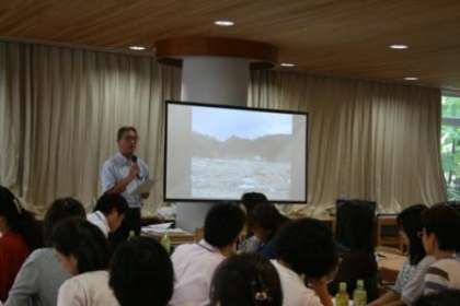 PTA主催の校内研修会が開かれました。今回は、防災意識の高まりを受け、砧総合支所地域振興課の防災担当係長である長谷進さんを講師にお迎えしました。世田谷区の防災や避難の仕方、家庭での備えについてのお話を伺い、後半は参加した保護者と先生方とでグループ懇談を行いました。