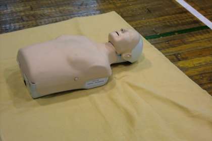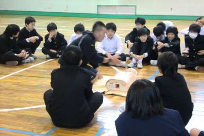 気道確保や心臓マッサージなどを練習用のマネキンを使って実習しました。