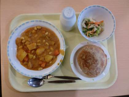 11月6日 ビスキュイパン牛乳チリビーンズシチューツナサラダ