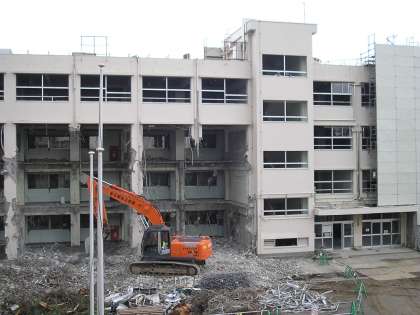 工事が進んでいます。写真のように、北校舎の取り壊しが始まりました。