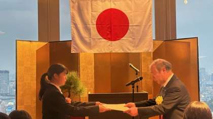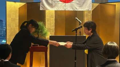 キャロットタワーで3名の砧中生が表彰されました。すばらしいですね