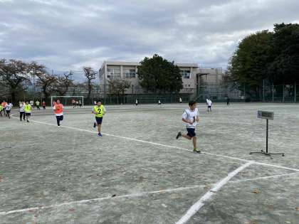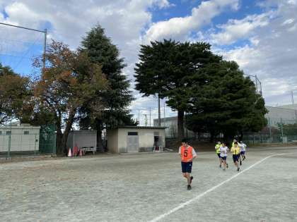 ウォーミングアップのあと、それぞれの距離のタイムを計ります。