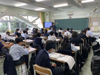 校内を巡回していると、よく笑い声が漏れてくるのが社会科の授業。脱線してるのかなと思いきや、ちゃんと気候について学んでいるようです。活気があって良い雰囲気です!