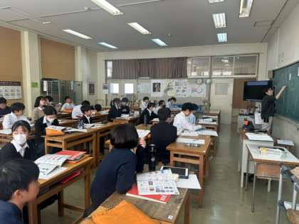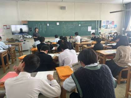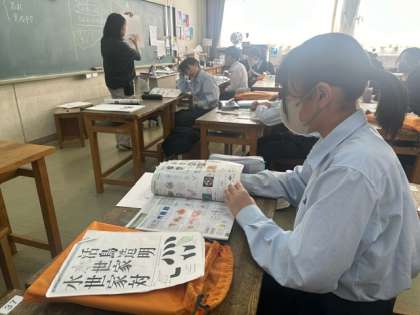 1年生の美術は、レタリングをしています。自分の名前のレタリングを下書きしたものに、水彩で色を塗っていきます。