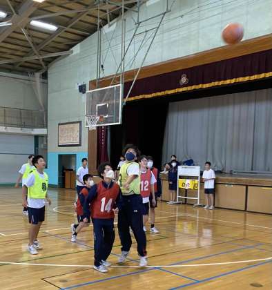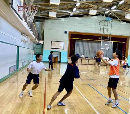 2年生男子の体育の授業は、バスケットボールです。