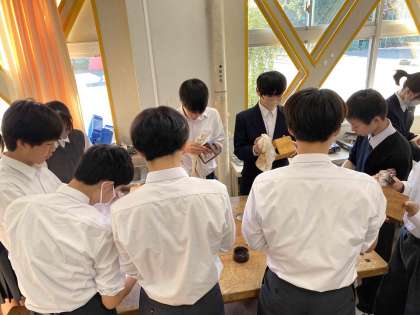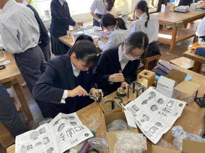 ウッディーキューブラジオ、というキットを使い、木工と電子工作をしています。紙やすりをかける人、ベルトサンダーを使う人、ワックスを塗る人、ラジオ部分の組み付けをする人、皆さんそれぞれの作業を進めています。