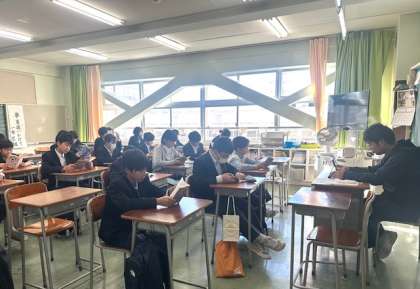 1年生の朝読書の様子です。静寂が気持ちのよい時間です。