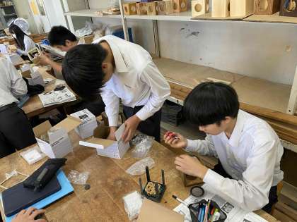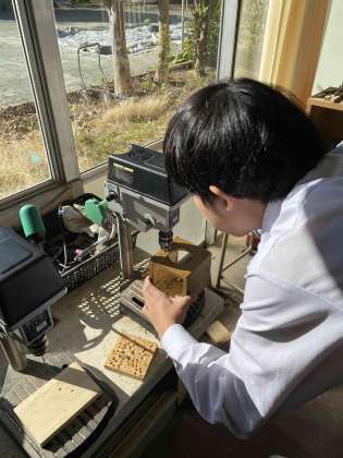 木部にドリルで穴を開けたり、基盤の組み付けをしたり、ワックス加工をしたり。それぞれの作業を進めています。