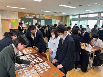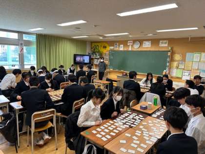 3年生の総合の時間に、各クラスで百人一首大会をしています。