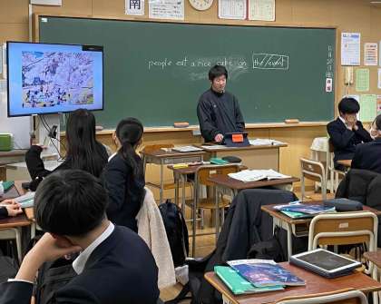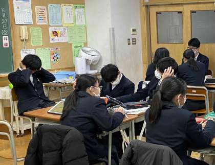 「お花見を英語で言うと?」などをグループで考えますが、回答者は皆さんが相談している間、目をつぶって耳をふさいでます。