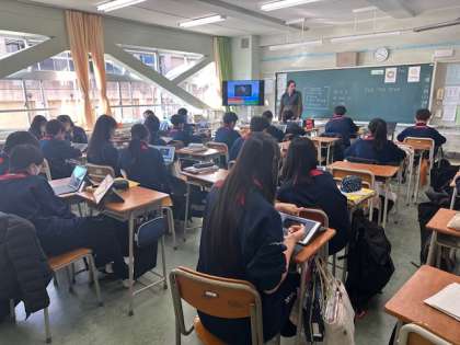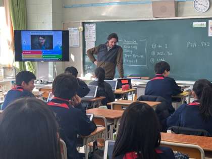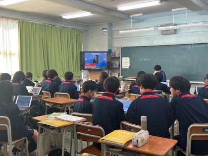 1年生の英語では、2024年の出来事を英語のゲームで振り返っています。2クラスとも、活発に意見を出しています。