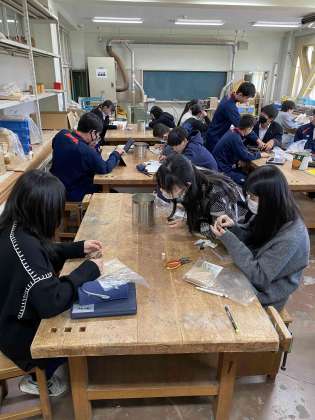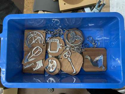 鋳造と木工の組み合わせで、キーホルダーを作成しています。