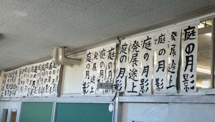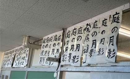 1年生の教室前の廊下に、書き初めを掲示しています。来週の学校公開の折になど,どうぞご覧ください。