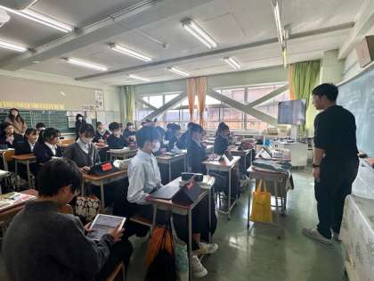 1年生の社会科の授業では、アマゾンの開発について、賛成・反対の意見を出し合っています。