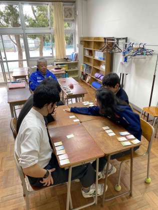 百人一首をチーム対抗、源平合戦で行っています。