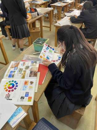 色相環を使って、色彩の仕組みを学んでいます。