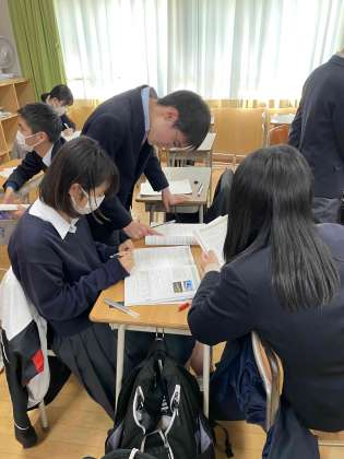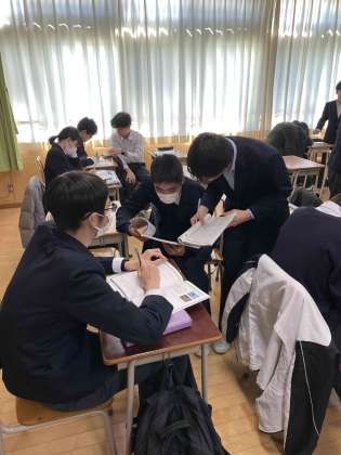 個人で取り組んだ後は、教え合いをしています。人に説明すると、より深く理解できるのですよね。