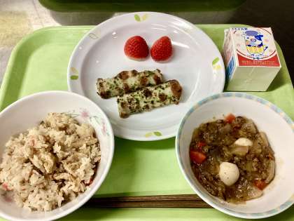 ただ、味が落ちる!揚げ物を焼き物に変更したことで、カラッとした揚がりが「油を使わない」ことによる謎の食感、ジューシーさをほとんど感じることができない味わいでしたが、これはもう本当に仕方がない!「ちくわの磯辺揚げ」は、リクエスト給食でもけっこう人気があったので残念ですが、「美味しくない!」といった声により混乱が起きていたクラスは1つもなく、みんな静かに食べていました。ちくわが遅れることについて、事前に放送で説明をしましたが、それをみんながちゃんと聞いてくれて、事情を理解してくれていたんだと思い、大変ありがたかったです!