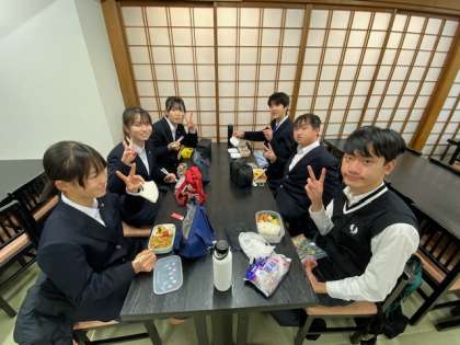 雷5656会館に早めの班が到着し、昼食タイムです!