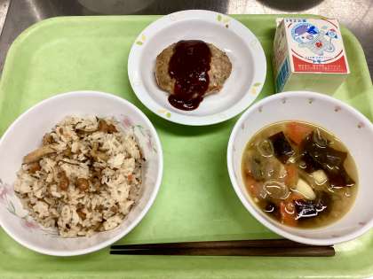節分ご飯には、大豆だけでなく、豚ひき肉・油揚げも使っています。この2つがもつ油のコクとジューシーさが「混ぜご飯」としての味を高めてくれます!さらに、大豆は一度油で素揚げしています。サクサクコリコリとした食感で、とても食べやすい!「節分ご飯」と聞けば、「豆が嫌いだから食べたくない」と思ってしまう生徒がいても、全くおかしくありません。そのため、食べやすく美味しくなるよう最大限の工夫をしました!さらに、混ぜご飯はボリュームを感じやすいので、今日はシンプルに3品のメニューにしてあります。