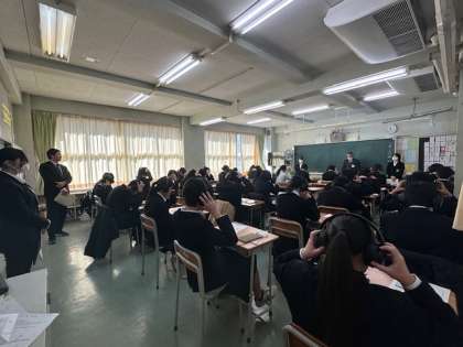 今日の2時間目から5時間目まで、1、2年生はクラスごとに、ESATーJのテストを受けています。